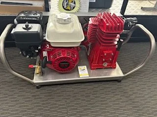 12 or 17 Cfm ABAC Pump, Honda GX200 Motor, Stainless Steel Frame with Carrying Handles, Inline Filter system, 15 litre Stainless Steel Reservoir, 3 metRE intake hose with cam lock fittings and inlet filter, Hour Meter, Ryco connectors (standard).